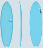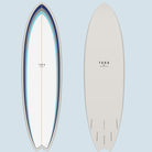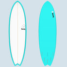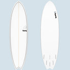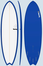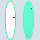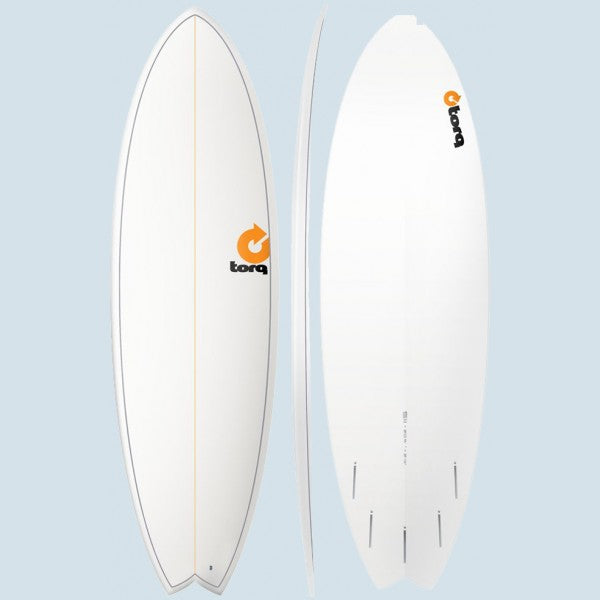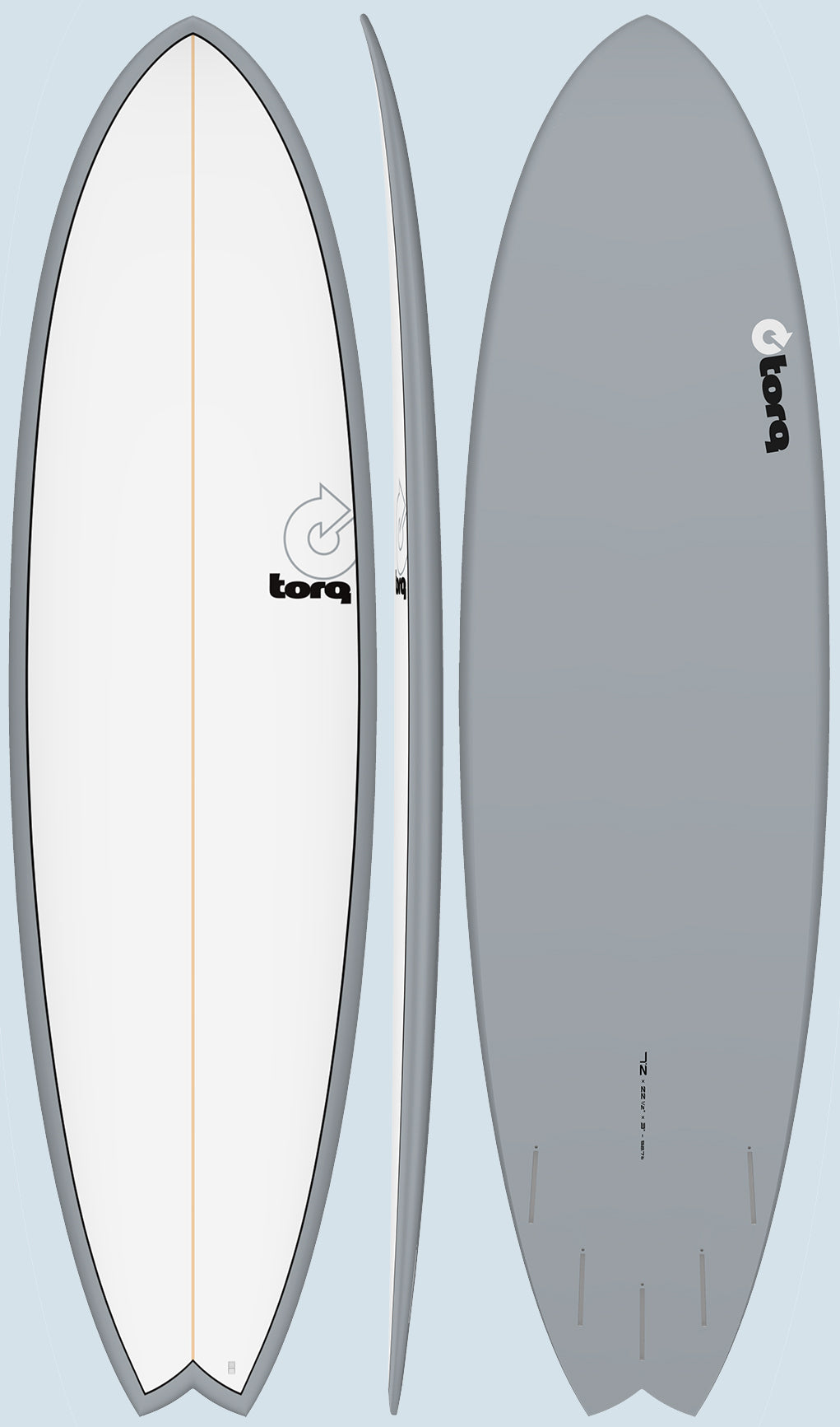 Vom 5'11'' Fish für den Nachwuchs bis hin zum 7'2'' Fish für schwere, erfahrene Surfer bietet die Fish Serie von Torq für jeden Surfer den passenden Fish. “Mod” steht in der Artikelbezeichnung für “mordern” und verdeutlicht die modernen, benutzerfreundlichen Design Elemente: Eine entspannte Rockerlinie kombiniert mit einer breiten Nose führt zu einem fish-typischen leichten Angleiten auch in schwächeren Wellen. Die damit einhergehende gerade Railline in den vorderen zwei Dritteln des Boards erzeugt einen sehr großen Sweet Spot. Das heißt, dass der Mod Fish nicht zu sensibel auf ungewollte Gewichtsverlagerungen und nicht optimale Fuß Positionierung reagiert. Andererseits sind viele moderne Elemente in den Mod Fish integriert, die ihn deutlich einfacher zu drehen und kontrollieren machen als klassische, retro-orientierte Fishes: Neben dem 5-Finnen-Set-up, das einem die Wahl zwischen Quad (vier Finnen für mehr Speed und Drive) und Thruster (drei Finnen für mehr Drehfreude und Kontrolle) gibt, ist hier vor allem das stark ausgedünnte und recht schmale Tail in Kombination mit einem Double-Concave-to-V-Unterwasserschiff für leichtes Initiieren von Turns zu nennen.